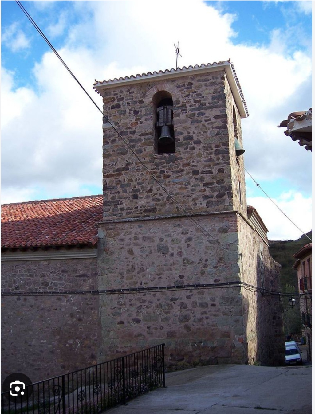 Según se sube la cuesta al pueblo por la carretera la primera casa a la derecha, escudo de hidalgo en cartela manierista del XVII, con león rampante a la derecha de un pino enraizado.